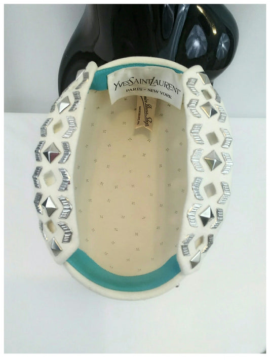 Rare 1950’s Yves Saint Laurent Studded White Felted Fur Cap with Geometric DetailsRegular price $625.00 USDRegular priceUnit price / per-