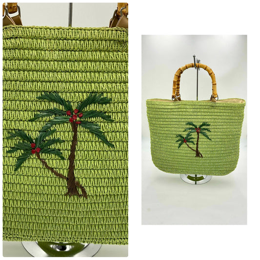Resort Vintage 80's Lime Green Straw Bag with Tropical Palm Tree DetailRegular price $165.00 USDRegular priceUnit price / per-