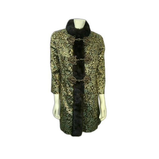 Vintage 1960s Maxine's of Pittsburg Silk Brocade Jacket w/ Fur Collar