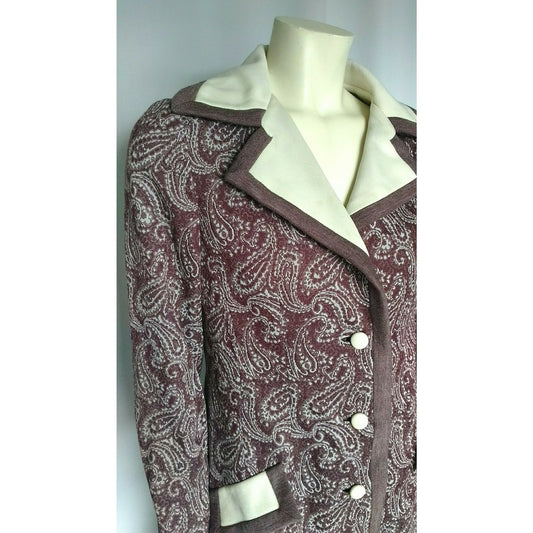 Vintage 1960’s Lilli Ann Mod Maroon and Beige Paisley Knit Coat