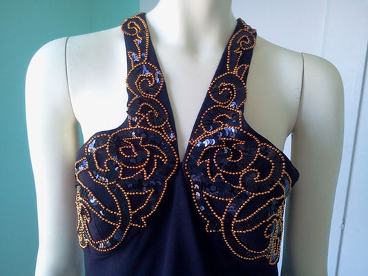 Vintage 1980's Lillie Rubin Cocktail Dress - Black & Copper Glamour