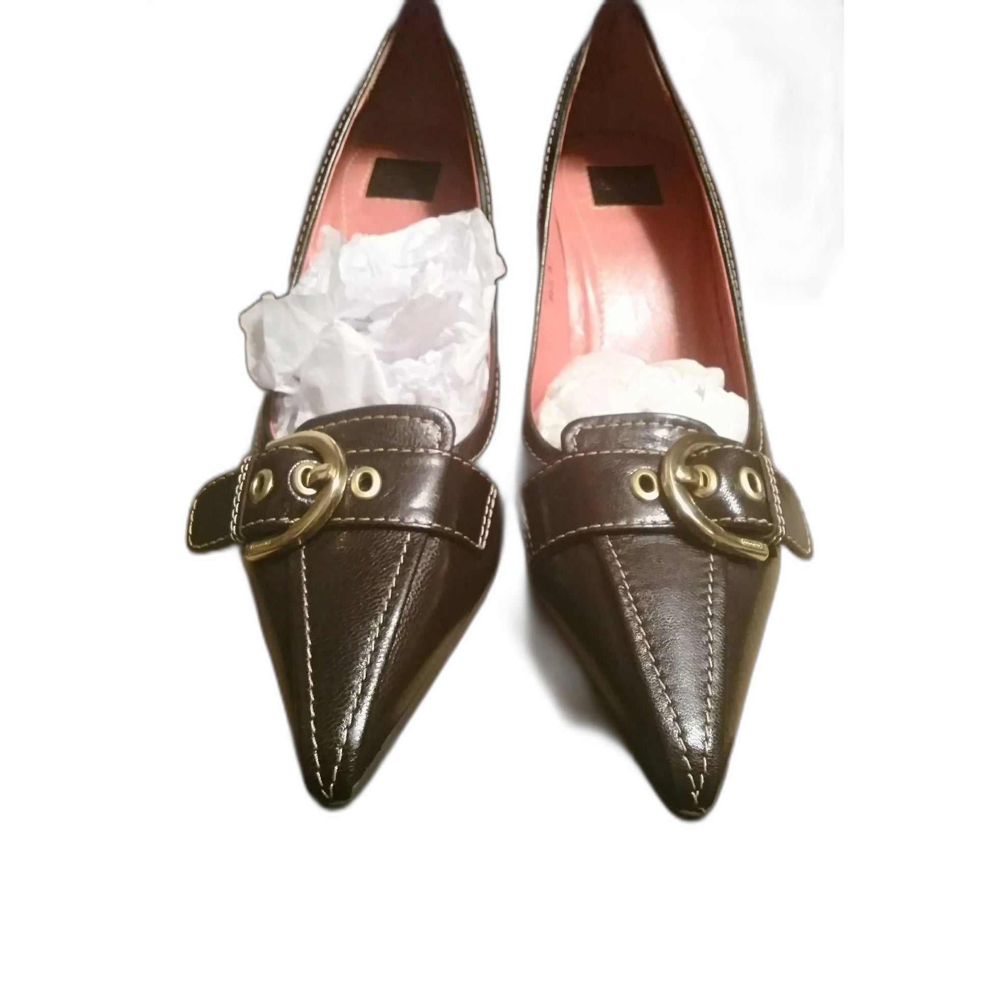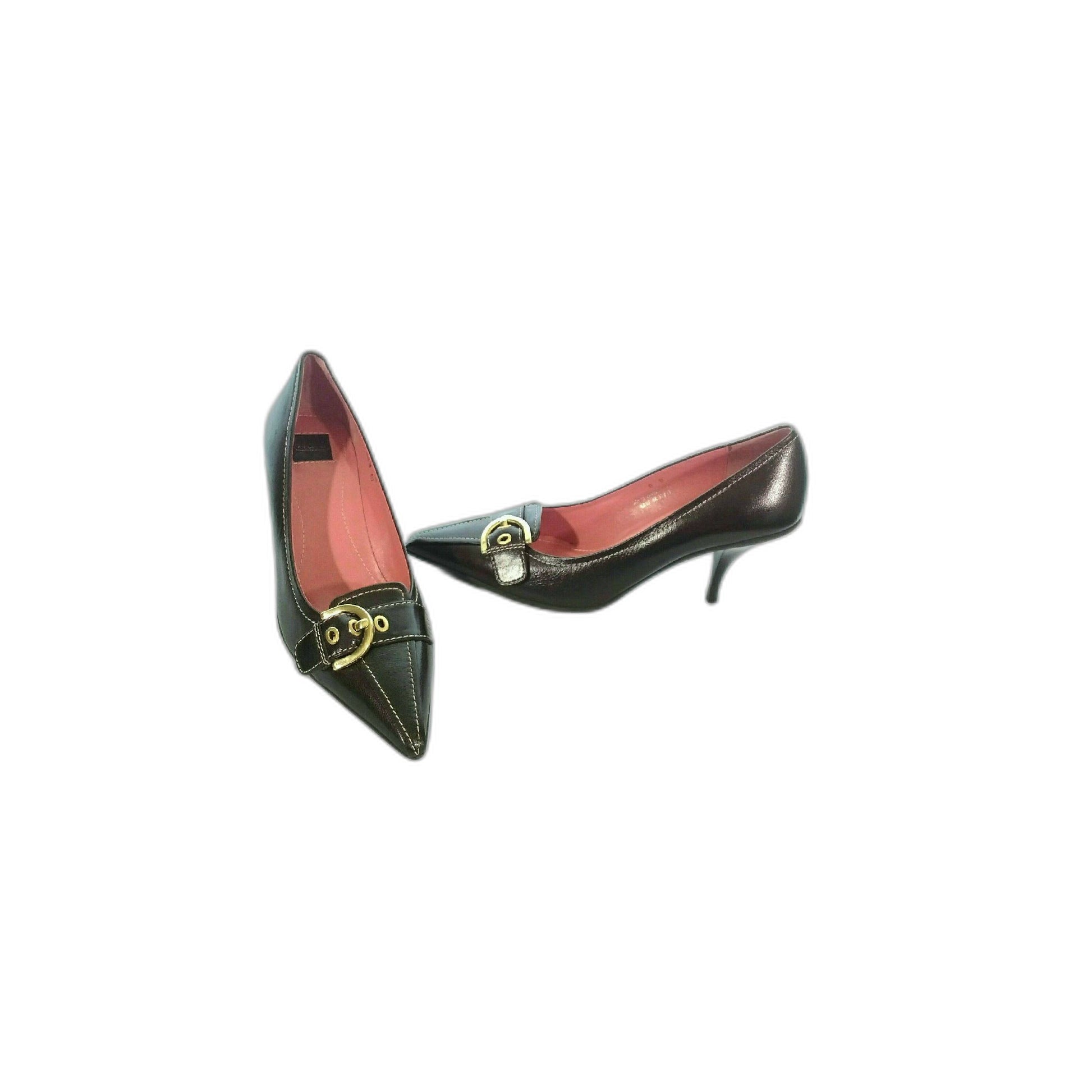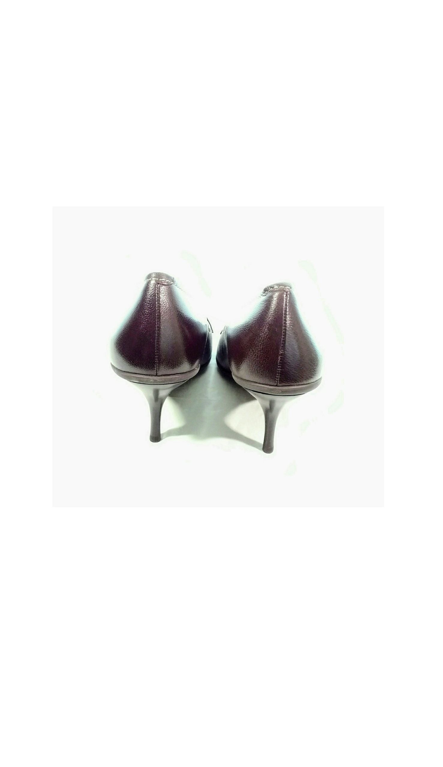 Color Chestnut Leather pointed toe pumps, top stitching and with coach gold/brass buckle detail. New in Original box, box in very good condition, shoes never worn. Not vintage- produced between 2010-2019.