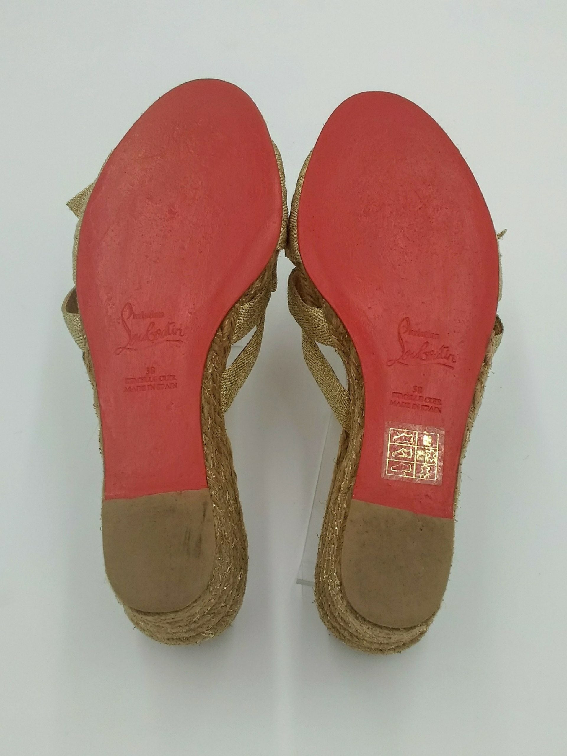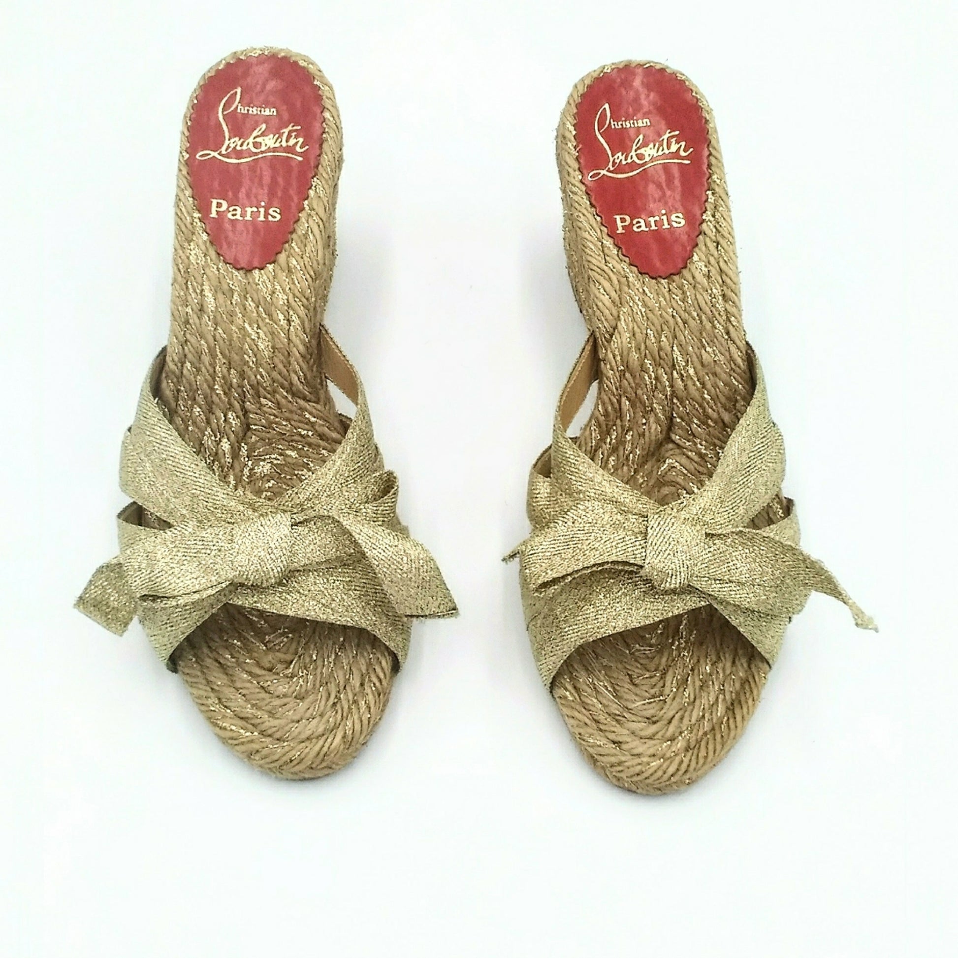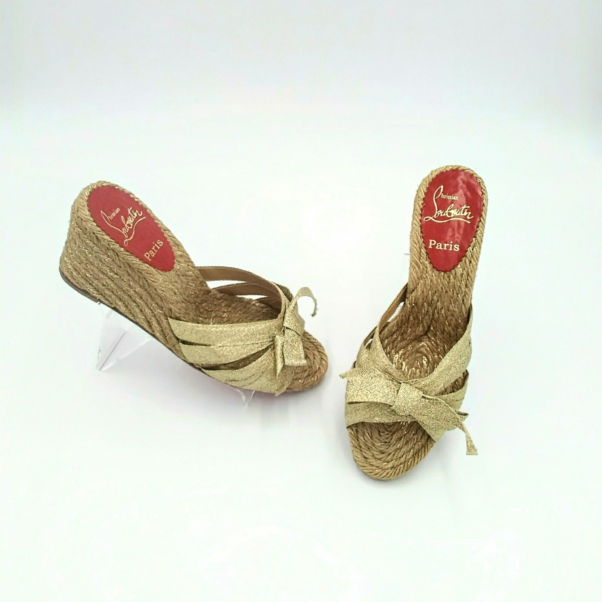 Authenticated Christian Louboutin Gold Metallic Wedge Mules