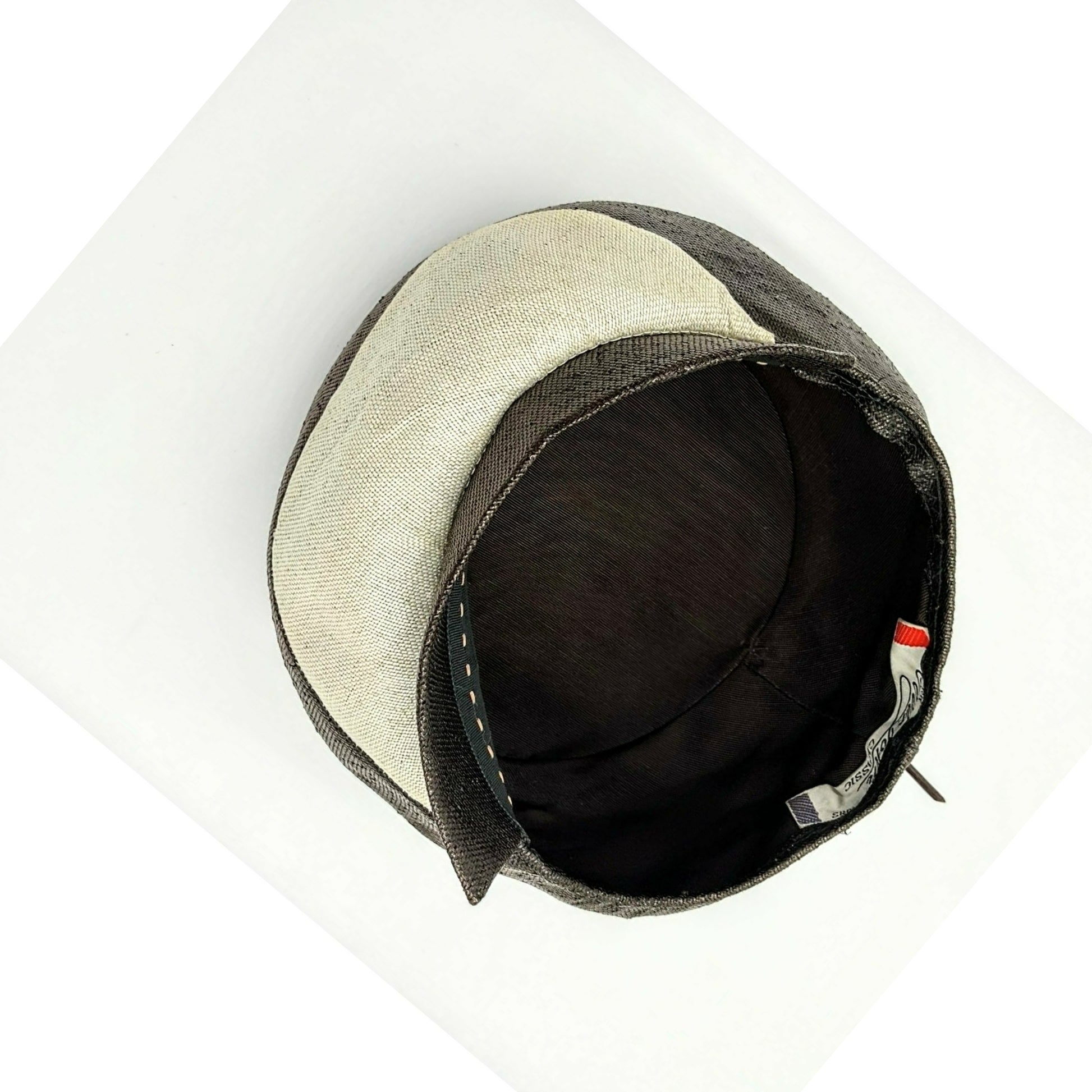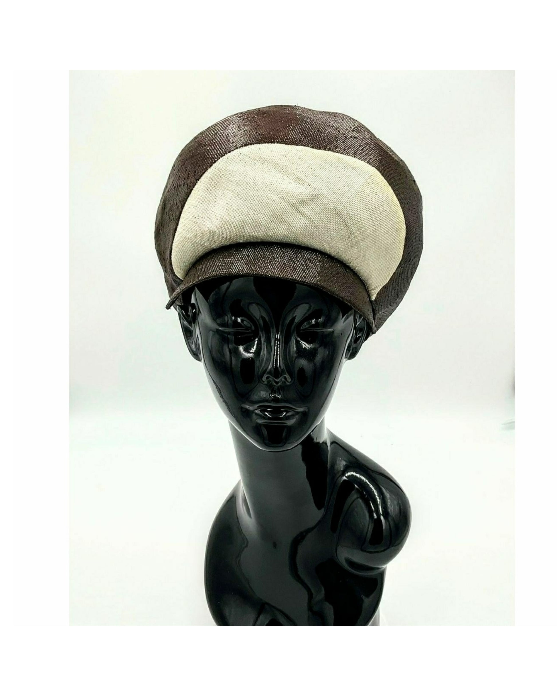 Vintage 1970s Mr. John Classic Two Tone; Beige and Dark Brown Parasisal Straw Hat New York, Paris label
