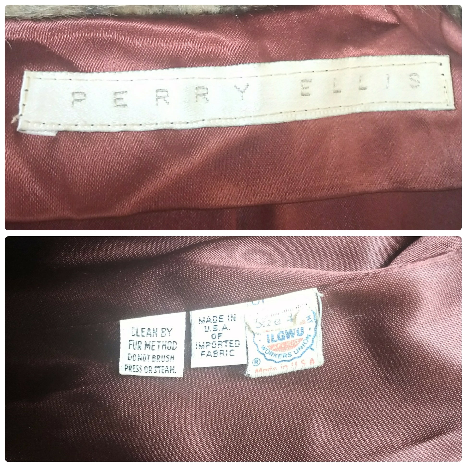 Vintage 1980's Perry Ellis Leopard Faux Fur Coat. Coat is stunning in appearance, Faux fur looks amazing and no bald spots. The coat; large shoulder pads, has a 2"collar, 4" lapel, with large oversize pockets 8" wide and 9" length, and has three buttons (1/top, 1/middle, and 1/inside). Coat tag; Size 4, but the coat is oversized which reflects the style of the 80's. The coat is lined 100% Acetate, Made in America, Union Label, and Imported Fabric. The designers for Perry Ellis in the 80's were Isaac Mizrahi (82-84) and Marc Jacobs (88-93). Please review the measurements I have provided below. Excellent Vintage Condition. No tears, holes or discoloration.