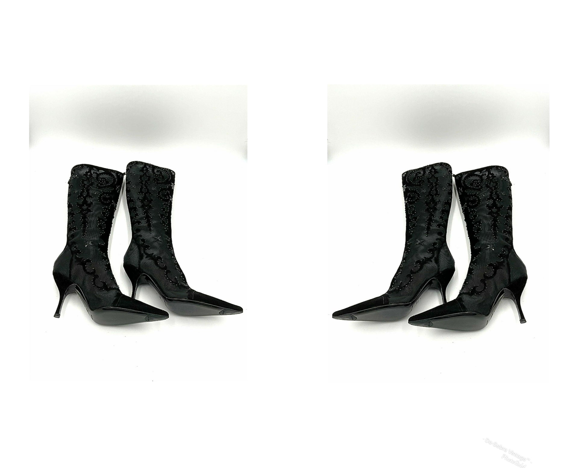 These boots are an iconic statement piece, reflecting Sergio Rossi's mastery of form and high-octane early 2000s style.